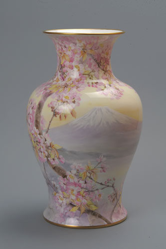 HOME> 近代・現代工芸>ノリタケボーンチャイナ 桜富士模様花瓶[no0045]